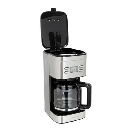 Capacité : 1,5L (de 12 a 15 tasses) – Minuteur digital – Ecran LCD – Niveau d’eau – Filtre lavable – Pieds antidérapants – Inclus : filtre permanent + cuillere – Longueur cordon : 75 cm – Coloris : Inox – Puissance : 900W – Alimentation : 220-240V – Garantie : 2 ans