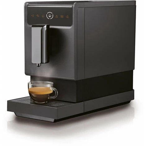 - 5 fonctions : cafés court, long, allongé, tasse personnalisée. Broyeur à grains Acier Inoxydable / Réglage 5 niveaux de finesse. Réservoir à eau 1.2L. Réservoir à grains 150g. ECO System avec arrêt automatique (ASO). Programme de détartrage. Accessoires : 3 sachets pour détartrage et brossette.